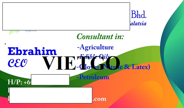 Qua cuộc trò chuyện, VIETGO nhận thấy ông Ebrahim là một vị khách hàng tiềm năng, hứa hẹn sẽ mang lại cơ hội hợp tác tốt đẹp cho các nhà cung cấp. Vị khách hàng đang mong muốn sẽ nhận được báo giá để có thể thực hiện đơn hàng trong thời gian sớm nhất. Vì vậy, Quý nhà cung cấp nào có thể đáp ứng cho đơn hàng này, vui lòng liên hệ với ông Ebrahim theo thông tin được cung cấp dưới đây.