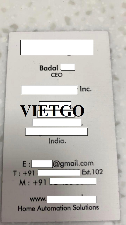 Ông Badal mong muốn sớm nhận được báo giá từ các nhà cung cấp của VIETGO. Bởi vậy, quý nhà cung cấp mong muốn hợp tác cùng vị khách hàng xin vui lòng liên hệ và báo giá cho ông trong thời gian sớm nhất theo thông tin dưới đây: