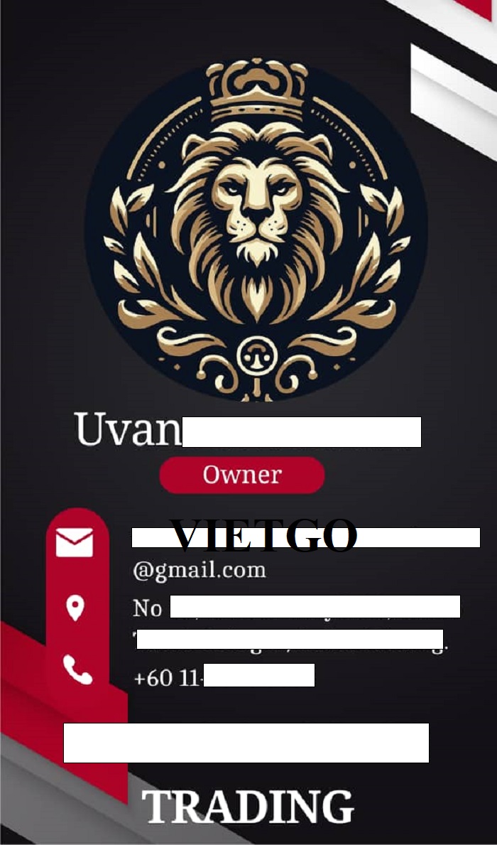 Ông Uvanee ██████████- vị khách hàng của VIETGO lần này đại diện mua hàng đến từ Malaysia. Hiện tại ông đang là chủ sở hữu của công ty ██████████ Trading, có trụ sở tại Pulau Pinang, Malaysia. Ông vừa mới bắt đầu công việc kinh doanh của mình cách đây không lâu, do đó ông rất mong muốn có thể hợp tác với các nhà cung cấp tiềm năng của VIETGO. Ông tập trung chủ yếu vào mặt hàng trứng sau đó ông sẽ mở rộng kinh doanh thêm các sản phẩm khác để đáp ứng nhu cầu của khách hàng. Với sự cam kết về chất lượng phù hợp với giá cả, ông luôn kiểm tra kỹ lưỡng sản phẩm trong từng khâu trước khi đưa đến tận tay khách hàng.