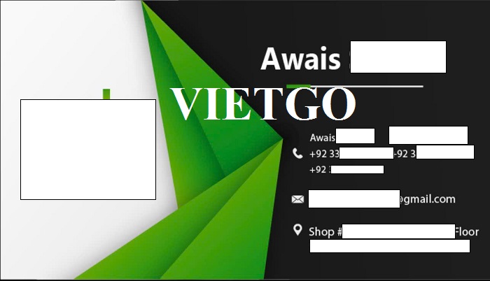 Ông Awais ██████████ - vị khách hàng của VIETGO lần này đại diện mua hàng đến từ Pakistan. Hiện tại ông đang làm việc tại công ty ██████████, có trụ sở tại Karachi, Pakistan. Ông có nhu cầu nhập khẩu chè đen để sản xuất trà sữa, đáp ứng nhu cầu của khách hàng tại đây. Ông cũng kinh doanh trong lĩnh vực may mặc và các loại vải. Ông cũng sở hữu một nhà máy may mặc tại thị trường nội địa. Những năm gần đây, nhu cầu về các sản phẩm nông sản tại đây tăng cao, do đó ông mở rộng thị trường và các sản phẩm kinh doanh để nâng cao hiệu suất và lợi nhuận của công ty.
