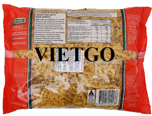 Loại sản phẩm: Mì Conchiglie, mì dạng ống Penne, Rigatoni, Elbow Macaroni, mì dạng xoắn Fusilli, mì dạng sợi Fettuccine, mì dạng nơ Farfalle