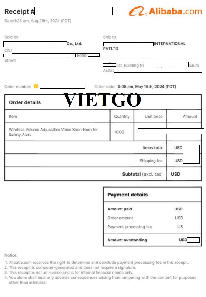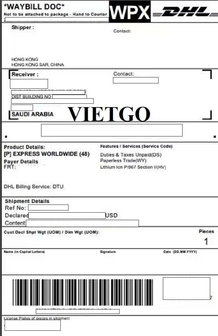 Hình ảnh bản vận đơn vị khách hàng nhập khẩu sản phẩm còi báo động không dây từ Trung Quốc đến Saudi Arabia