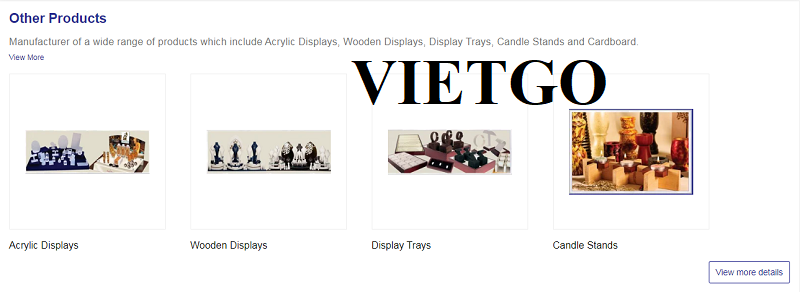 Chia sẻ với VIETGO, ông Sunnil cho biết: “Chúng tôi ██████████ pvt. Ltd. đang kinh doanh Bao bì, In ấn và Sản phẩm Quảng cáo để hỗ trợ trong việc xây dựng thương hiệu và chiến lược Tiếp thị Sản phẩm. Công ty có trụ sở tại Vasai cách Mumbai khoảng 50km. Chúng tôi sản xuất các sản phẩm được làm từ các vật liệu như Gỗ, Bìa cứng, Acrylic, Nhựa, Da, Giấy tái chế. Các mặt hàng thủ công, Đồng thau và các mặt hàng khác như vậy. Chúng tôi có một đội ngũ thiết kế sáng tạo giúp giải quyết các giải pháp cuối cùng của doanh nghiệp. Các ngành công nghiệp hiện tại mà chúng tôi đang hướng tới là đồ trang sức, Đồng hồ. Nước hoa, Trà, Quang học. Văn phòng phẩm, v.v.