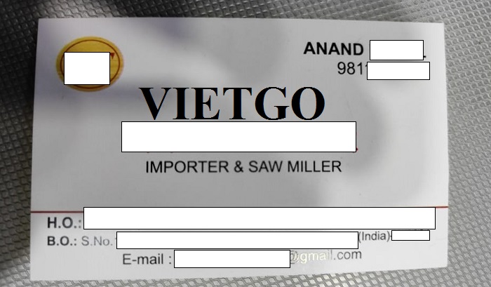 Vừa qua, ông Anand – Giám đốc công ty ██████████ đến từ Ấn Độ đã liên hệ với VIETGO để bày tỏ mong muốn tìm nhà cung cấp mặt hàng gỗ dán thương mại để nhập khẩu tới thị trường Ấn Độ phục vụ cho dự án kinh doanh của công ty mình.