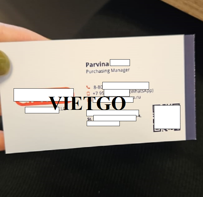 Bà Parvina ██████████ - vị khách hàng của VIETGO lần này đại diện mua hàng đến từ Nga. Hiện tại bà đang là Giám đốc mua hàng tại công ty ██████████ LLC, có trụ sở tại Petersburg, Nga. Đây là công ty chuyên nhập khẩu đồ ăn tại các quốc gia khác trên thế giới bao gồm hạt điều. Điều này mang lại sự đa dạng cho người tiêu dùng và giúp thị trường nội địa phát triển. Ngoài ra, công ty còn đóng vai trò trong việc giới thiệu các sản phẩm mới và xu hướng ẩm thực từ các quốc gia khác vào thị trường Nga. Từ đó tạo ra cơ hội kinh doanh mới và làm phong phú thêm sự lựa chọn cho người tiêu dùng.