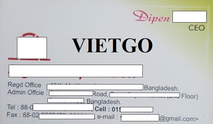 VIETGO xin gửi tới nhà cung cấp thông tin về đơn hàng nhập khẩu mủ cao su đến từ vị khách hàng người Bangladesh, ông Dipen.