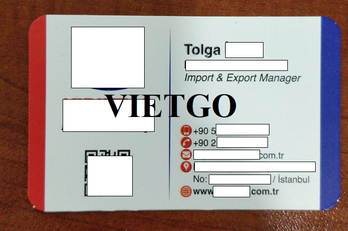 Ông Tolga tìm đến VIETGO mong muốn tìm được một nguồn cung cấp hàng mới chất lượng và tiềm năng có thể thay thế được thị trường Trung Quốc. Vị khách hàng tỏ ra rất nhiệt tình và mong muốn sẽ sớm có cơ hội được hợp tác với các nhà cung cấp của Việt Nam. Vì vậy, Quý nhà cung cấp nào có thể đáp ứng cho đơn hàng nhập khẩu của ông Tolga, vui lòng liên hệ với vị khách hàng theo thông tin được cung cấp dưới đây.