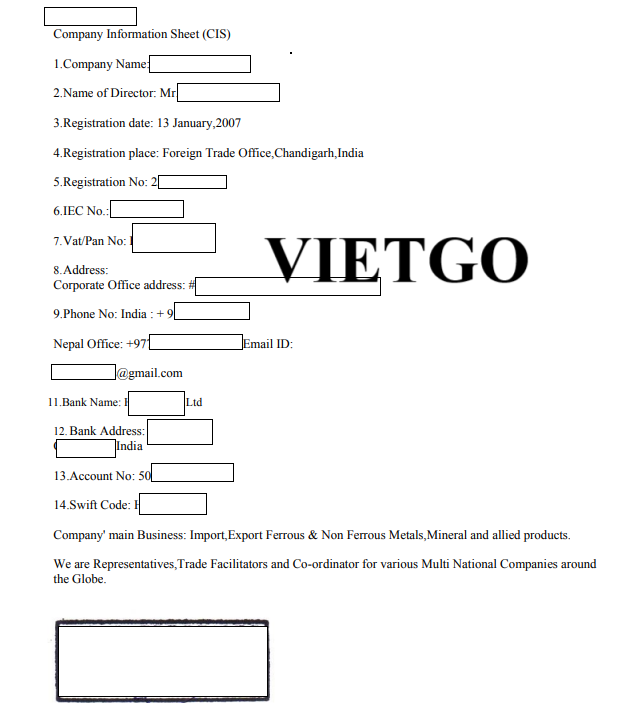 Công ty ██████████ có trụ sở chính tại Ấn Độ, cùng với chi nhánh tại Nepal, chuyên cung cấp và kinh doanh đa dạng các sản phẩm, đặc biệt là vật liệu xây dựng, khoáng sản, các loại dầu và khí đốt. Bên cạnh đó, công ty ông được biết đến là một trong những công ty kinh doanh và tìm nguồn cung ứng toàn cầu lớn nhất tại thị trường Ấn Độ, chịu trách nhiệm chính trong việc xác định và tìm nguồn cung ứng định kỳ cho các khách hàng.