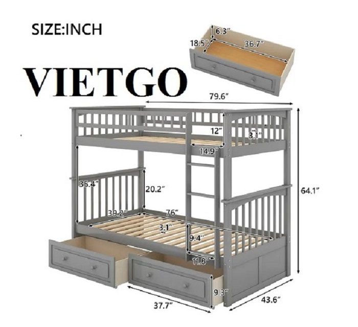 Bao gồm: Giường 2 tầng, có ngăn kéo đi kèm