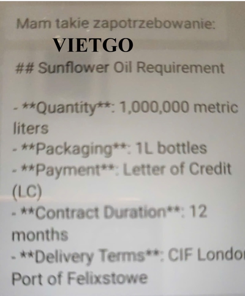 Dầu hướng dương: 1.000.000 lít