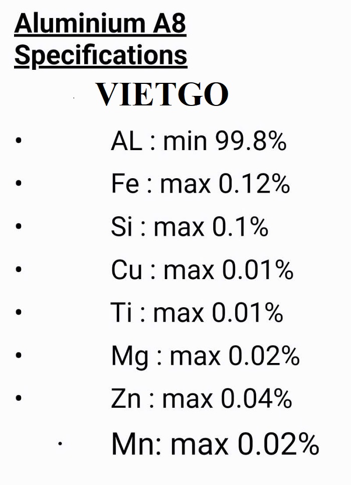 Nếu quý nhà cung cấp có thể cung cấp loại nhôm thỏi có hàm lượng FE <0.12%, vị khách hàng có thể tiến hành nhập khẩu tối thiểu 1200 tấn/tháng