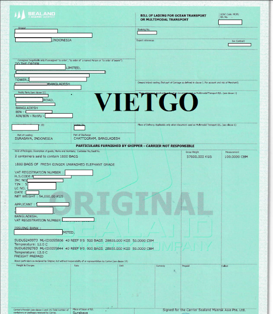 Dưới đây là bản vận đơn nhập khẩu sản phẩm gừng từ Indonesia vào ngày 06/06/2023 mà công ty vị khách hàng đã thực hiện thành công: