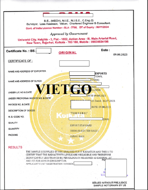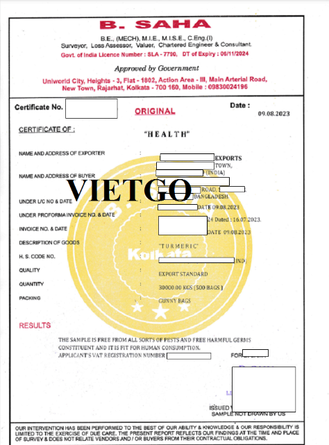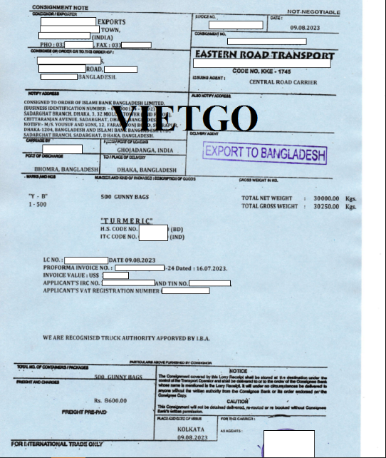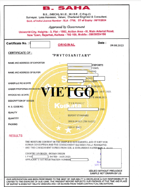 Dưới đây là bộ chứng từ nhập khẩu sản phẩm nghệ từ Ấn Độ vào tháng 7 năm 2023 mà công ty vị khách hàng đã thực hiện thành công: