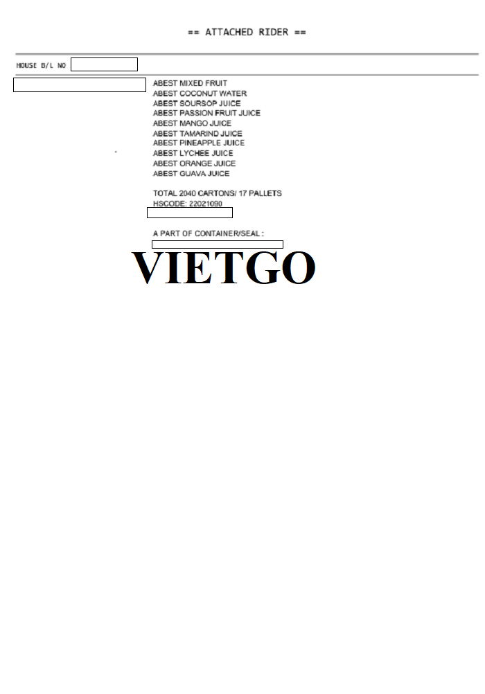 VIETGO xin gửi tới Quý nhà cung cấp thông tin đơn hàng và xin chúc Quý vị có được một thương vụ thành công!