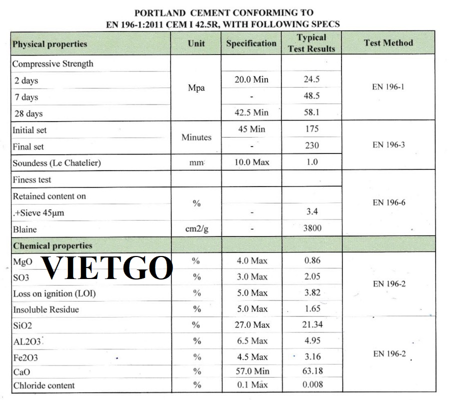 Xi măng Portland mác 42.5R và 52.5N (Loại có cường độ chịu nén tốt)