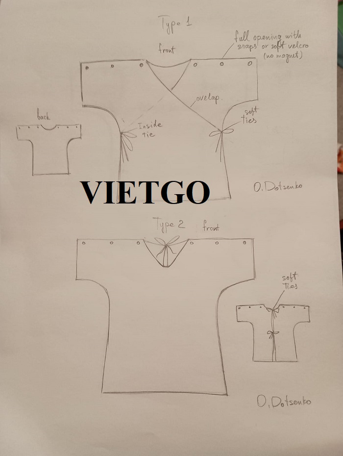 Thiết kế: Đồ liền thân hoặc áo có dây buộc, có nút bấm hoặc băng dính nối liền mặt trước và mặt sau giúp cho việc cởi đồ được dễ dàng
