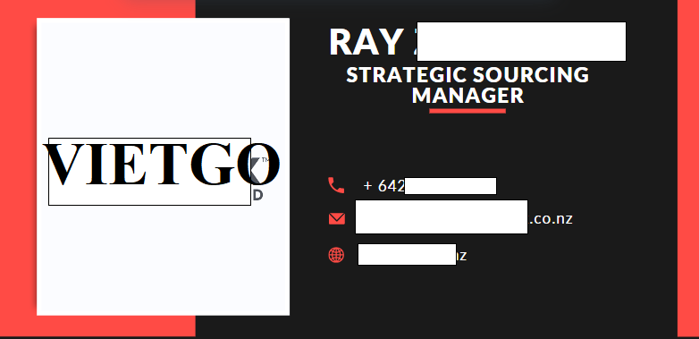 Vừa qua, ông Ray đã liên hệ với VIETGO và mong muốn được nhập khẩu ván dăm tới thị trường New Zealand. Ông Ray ██████████ hiện đang là Giám đốc chiến lược của công ty ██████████. Công ty của ông Ray được biết đến là một trong những doanh nghiệp hoạt động trong lĩnh vực kinh doanh và sản xuất sản phẩm xây dựng và nội, ngoại thất.