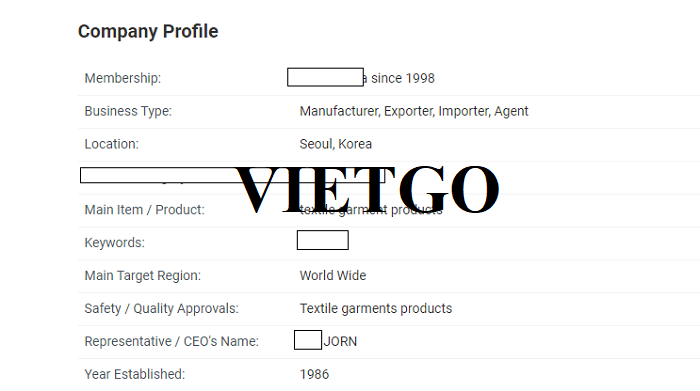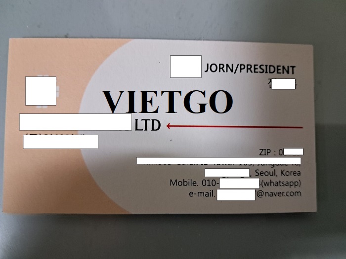 Ông Jorn là vị doanh nhân đến từ đất nước Hàn Quốc. Hiện ông đang làm chủ một doanh nghiệp mang tên ██████████ có trụ sở đặt tại ██████████ thủ đô Seoul. Vị khách hàng là người có kinh nghiệm lâu năm trong lĩnh vực thương mại và xuất-nhập khẩu hàng hóa. Công ty của ông được thành lập từ năm 1986, đến nay đã có hơn 37 năm kinh nghiệm hoạt động trên thương trường. Ông Jorn cùng đội ngũ ban lãnh đạo đã nỗ lực không ngừng để đưa ██████████ phát triển bền vững như ngày hôm nay.