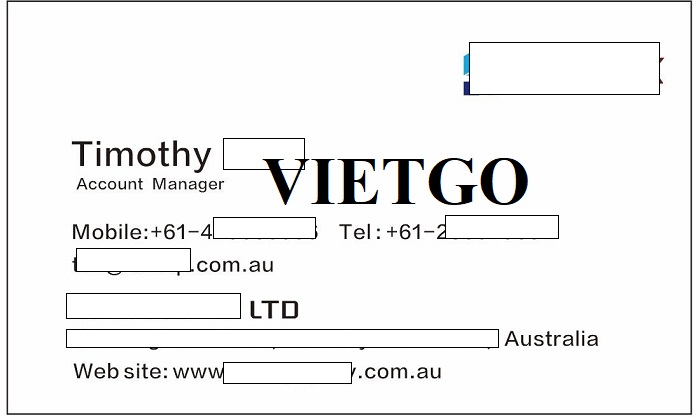 Vừa qua, VIETGO đã có cuộc trò chuyện và trao đổi chi tiết với ông Timothy – đại diện cho công ty ██████████ với tên đăng ký tại Úc là ██████████ PTY LTD đang tìm kiếm các nhà cung cấp tiềm năng cho sản phẩm ván HMR.