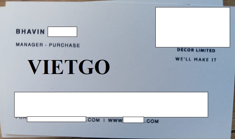 Quý nhà cung cấp nếu có thể đáp ứng các yêu cầu từ ông Bhavin xin vui lòng liên hệ và gửi sản phẩm mẫu cũng như báo giá trong thời gian sớm nhất qua địa chỉ liên hệ mà chúng tôi cung cấp sau đây: