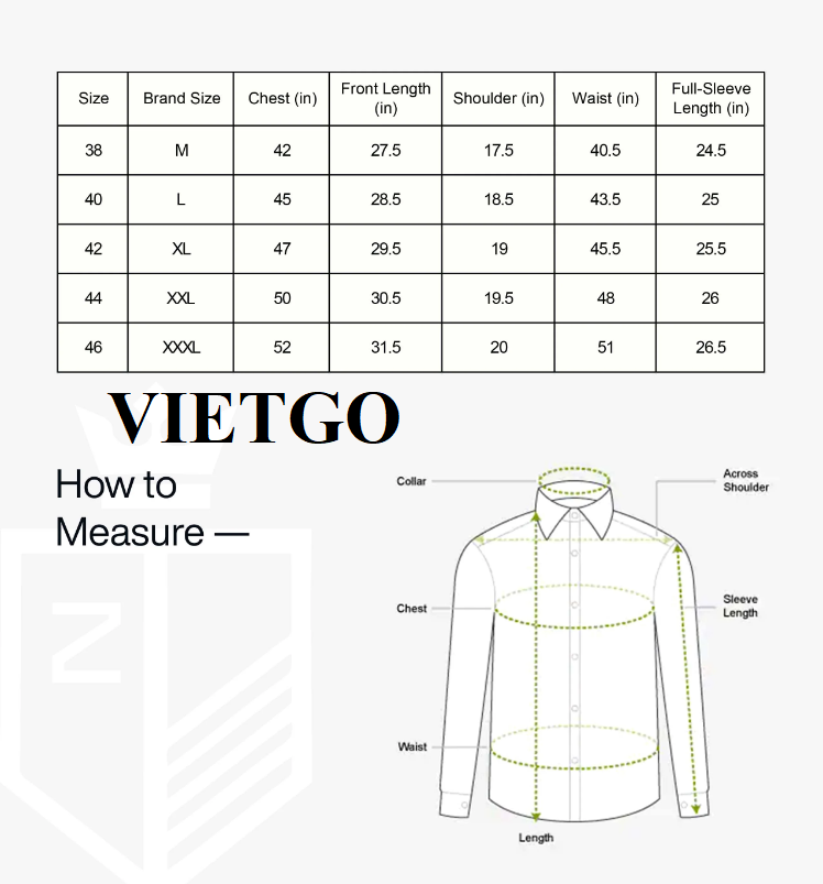 VIETGO xin gửi tới Quý vị thông tin đơn hàng nhập khẩu sản phẩm áo sơ mi của ông Stephen – vị khách hàng người Israel.