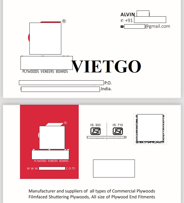 Vừa qua, ông Alvin, Giám đốc công ty ██████████ đã liên hệ với VIETGO để tìm kiếm nhà cung cấp ván bóc cho dự án kinh doanh của công ty mình.