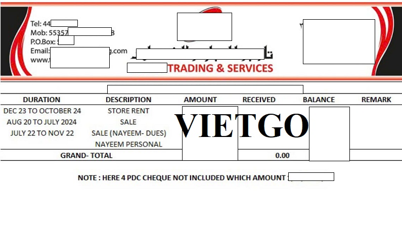 VIETGO xin gửi tới Quý nhà cung cấp thông tin đơn hàng, VIETGO chúc Quý vị có được một thương vụ thành công!