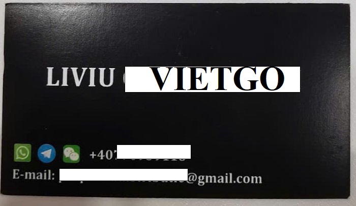 Ông Liviu mong muốn sớm nhận được báo giá từ các nhà cung cấp của VIETGO. Bởi vậy, Quý nhà cung cấp nào mong muốn hợp tác cùng vị khách hàng xin vui lòng liên hệ và báo giá cho ông trong thời gian sớm nhất theo thông tin dưới đây: