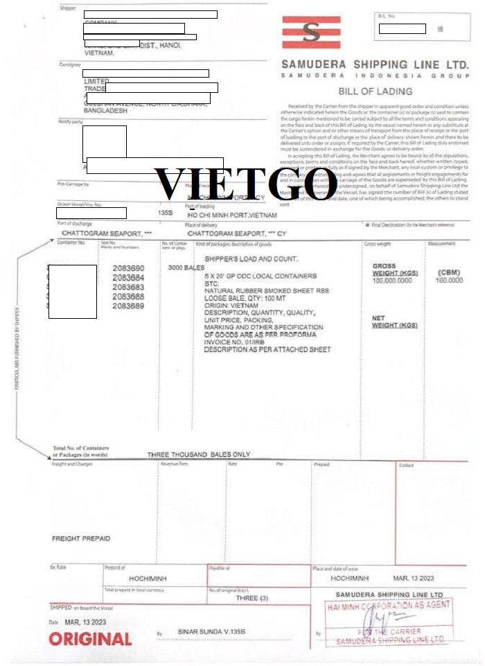 Dưới đây là bản vận đơn nhập khẩu mặt hàng tấm cao su từ Việt Nam vào Bangladesh ngày 13/03/2023 mà vị khách hàng đã thực hiện thành công: