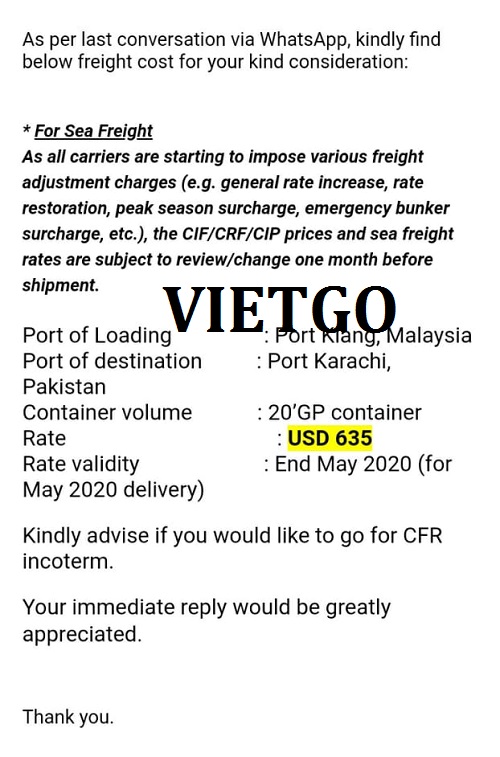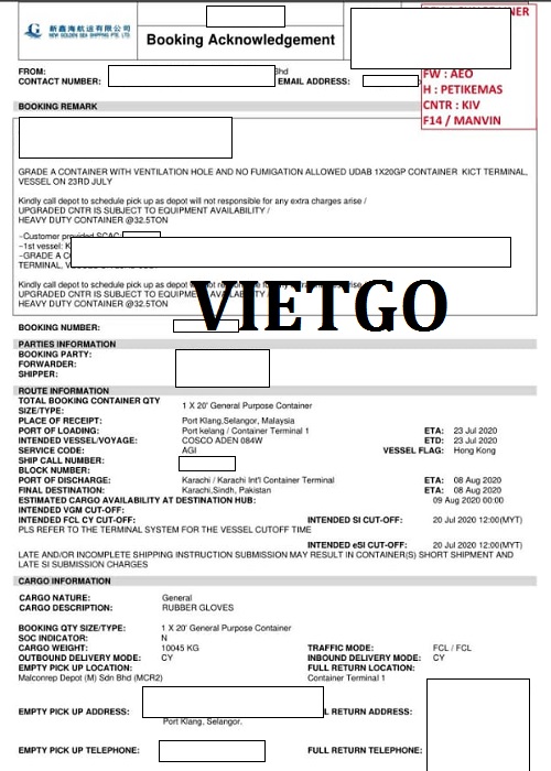 Dưới đây là hóa đơn chiếu lệ đơn hàng nhập khẩu từ Malaysia của vị khách hàng và thư xác nhận đặt tàu cho đơn hàng