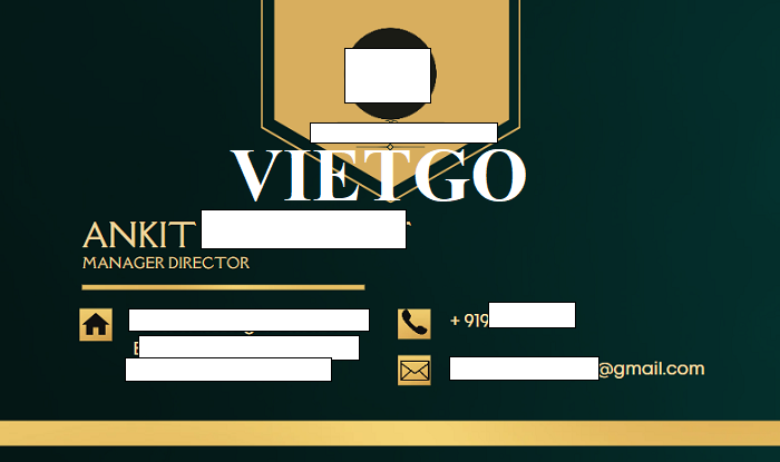 Quý nhà cung cấp nếu có thể đáp ứng các yêu cầu từ ông Ankit xin vui lòng liên hệ và gửi sản phẩm mẫu cũng như báo giá trong thời gian sớm nhất qua địa chỉ liên hệ mà chúng tôi cung cấp sau đây: