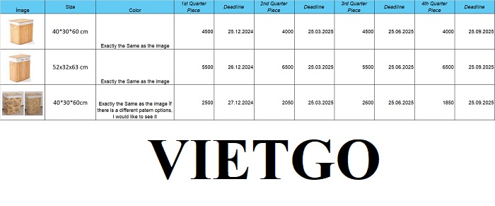 VIETGO xin gửi tới Quý nhà cung cấp thông tin đơn hàng, VIETGO chúc Quý vị có được một thương vụ thành công!