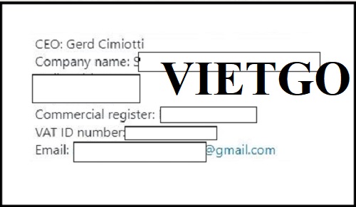 Rất mong Quý nhà cung cấp quan tâm tới đơn hàng có thể sớm liên lạc và báo giá với ông trong thời gian sớm nhất. Quý nhà cung cấp vui lòng liên hệ với ông Gerd qua các thông tin dưới đây để nhanh chóng báo giá và xuất khẩu thành công đơn hàng hấp dẫn này.
