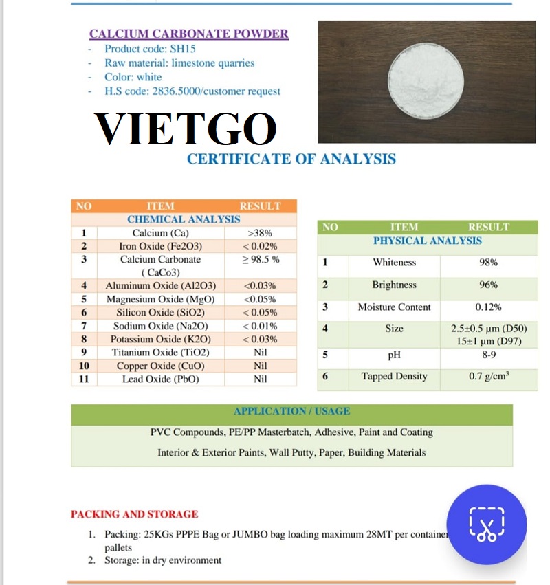 Liên hệ với VIETGO lần này, ông Hanif muốn tìm kiếm nguồn cung cấp cho sản phẩm bột đá vôi. Vị khách hàng bày tỏ hi vọng và tin tưởng vào VIETGO sẽ kết nối với các nhà cung cấp tiềm năng. Vậy Quý nhà cung cấp nào có thể đáp ứng cho đơn hàng của ông Hanif vui lòng liên hệ với vị khách hàng theo thông tin được cung cấp dưới đây.