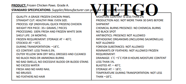 Chân gà có chất lượng tốt, được làm sạch và cấp đông, không chứa nước thừa và máu, đảm bảo vệ sinh an toàn thực phẩm