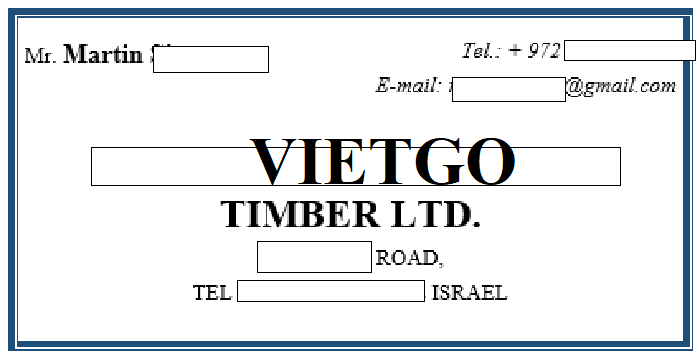 Vừa qua, VIETGO đã nhận được yêu cầu báo giá của ông Martin - đại diện công ty ██████████ Ltd. - về đơn hàng nhập khẩu gỗ dán cho dự án sắp triển khai của công ty mình.