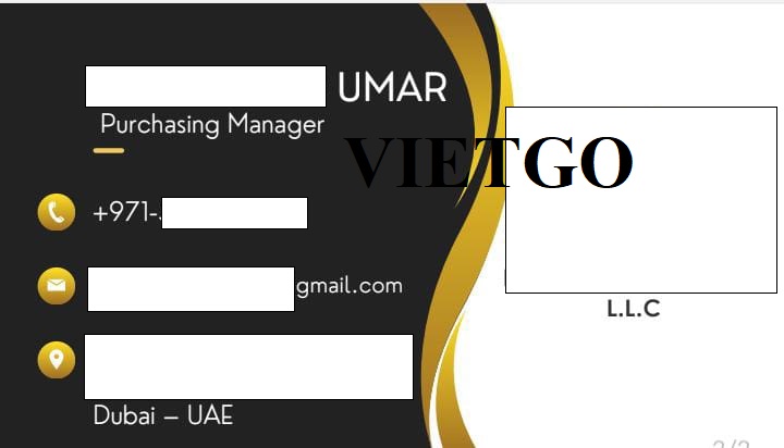Ông Umar là Giám đốc mua hàng đến từ công ty ██████████ có trụ sở văn phòng chính đặt tại UAE. ██████████ được thành lập vào năm 2020, là công ty xuất nhập khẩu đa dạng các loại mặt hàng, bao gồm: mặt hàng nông sản, máy móc và thiết bị công nghiệp, phụ tùng cơ khí, điện tử dân dụng, dệt may, thực phẩm và đồ uống, hóa chất và hóa dầu, vật liệu xây dựng. Các sản phẩm của công ty được phân phối tới nhiều khu vực tại thị trường nội địa và nhận được nhiều phản hồi cũng như đánh giá tích cực từ khách hàng. Ngoài ra, ██████████ còn thường xuyên cập nhật các xu hướng mới của thị trường cũng như tham khảo thêm nhiều sản phẩm đặc trưng tại các quốc gia khác để danh mục sản phẩm của công ty ngày càng phong phú và trở nên thu hút hơn với người tiêu dùng.