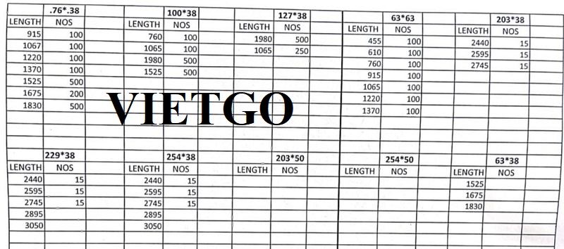 Kích thước chi tiết và số lượng cụ thể theo từng kích thước (trong 01 container 40ft): (chiều dài x chiều rộng x độ dày => số lượng (nos – thanh)