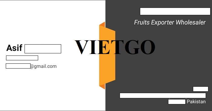 Ông Asif hiện đang là Giám đốc của công ty ██████████, một doanh nghiệp xuất khẩu hoa quả hàng đầu tại Pakistan. Với nhiều năm kinh nghiệm trong ngành xuất khẩu, công ty đã xây dựng được mạng lưới khách hàng rộng khắp và trở thành đối tác tin cậy của nhiều thị trường quốc tế. ██████████ chuyên cung cấp các loại trái cây tươi ngon, bao gồm các mặt hàng như táo, nho, cam và đặc biệt là chuối, phục vụ cho nhu cầu tiêu thụ toàn cầu. Với chiến lược phát triển bền vững và cam kết chất lượng, công ty luôn đảm bảo mang đến cho khách hàng những sản phẩm hoa quả đạt tiêu chuẩn cao nhất.