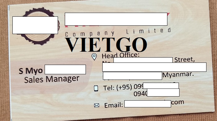 Vừa qua, ông Myo – Giám đốc kinh doanh của công ty ██████████ ██████████ tại Myanmar đã liên hệ với VIETGO để tìm kiếm nhà cung cấp gỗ keo xẻ cho dự án xuất của công ty mình sang thị trường Myanmar.