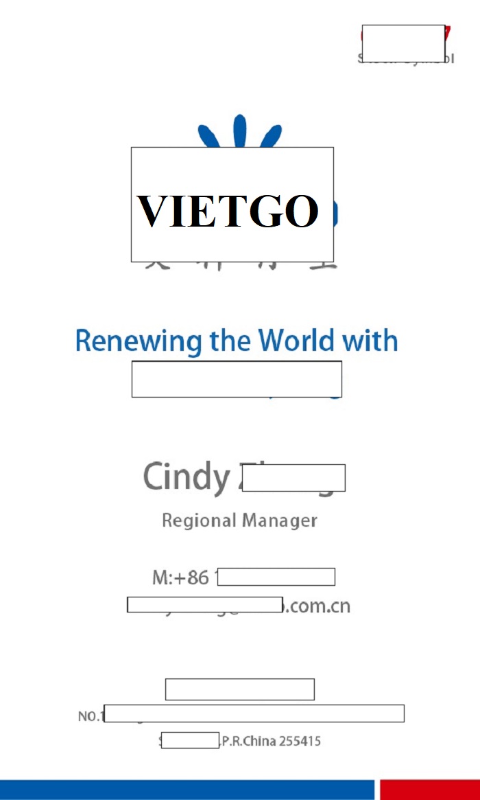 Với mạng lưới đối tác và khách hàng lớn cả trong và ngoài nước, ██████████ có tiềm năng phát triển mạnh mẽ. Công ty đang triển khai kế hoạch kinh doanh xuất khẩu, tập trung tìm kiếm nguồn cung ứng chai nhựa chất lượng với giá cả cạnh tranh. VIETGO đánh giá cao sự hợp tác của cô Cindy và khuyến khích các nhà cung cấp liên hệ trực tiếp qua thông tin dưới đây để nhanh chóng báo giá và hợp tác xuất khẩu thành công. Rất mong Quý nhfa cung cấp đáp ứng được yêu cầu của vị khách hàng vui lòng liên hệ và báo giá cho cô qua các thông tin liên hệ dưới đây: