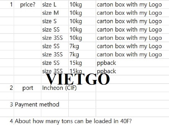 VIETGO xin gửi tới Quý nhà cung cấp thông tin đơn hàng, VIETGO chúc Quý vị có được một thương vụ thành công!