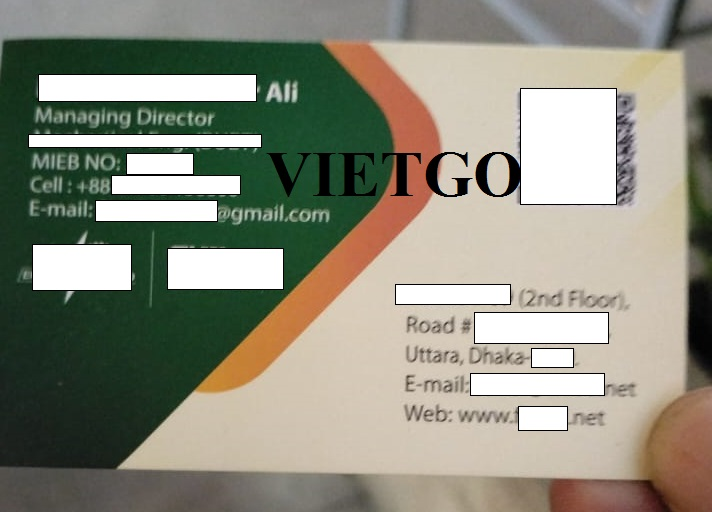 Là một vị khách hàng thân thiện và nhiệt tình khi thẳng thắn chia sẻ mọi vấn đề trong công việc, VIETGO tin rằng với những chia sẻ và thái độ làm việc chuyên nghiệp, ông Ali sẽ mang đến một thương vụ hợp tác xuất khẩu hấp dẫn. Vậy, Quý nhà cung cấp nào quan tâm đến đơn hàng này có thể liên hệ và trao đổi trực tiếp với vị khách hàng theo địa chỉ thông tin liên hệ dưới đây.