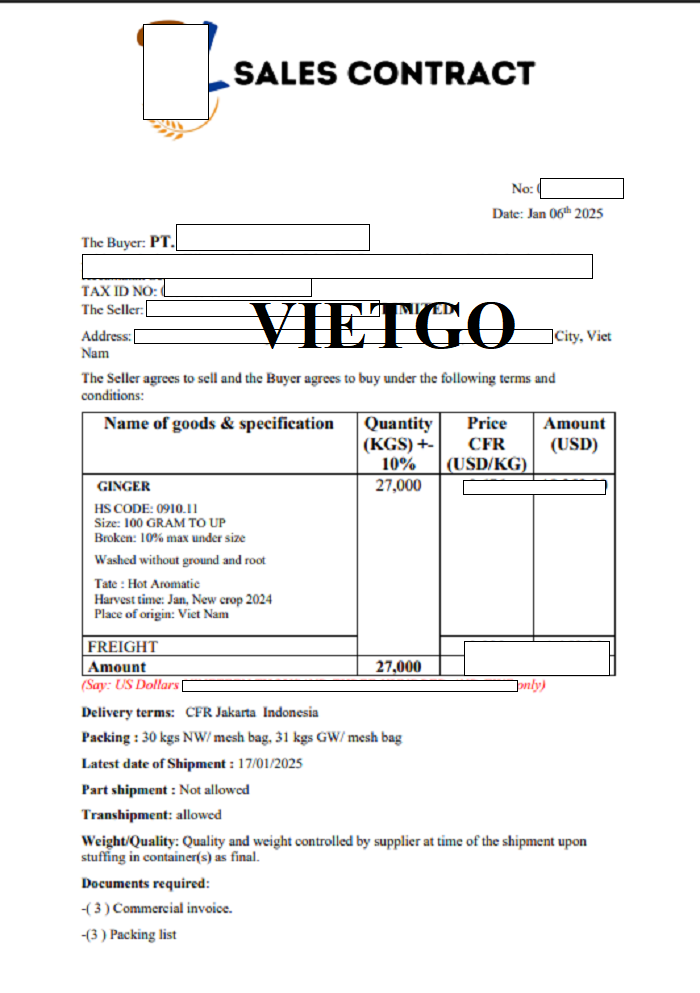 Dưới đây là hình ảnh một số hợp đồng thương mại, hóa đơn đặt cọc và bản vận đơn nhập khẩu gừng từ Việt Nam của vị khách hàng trong thời gian vừa qua: