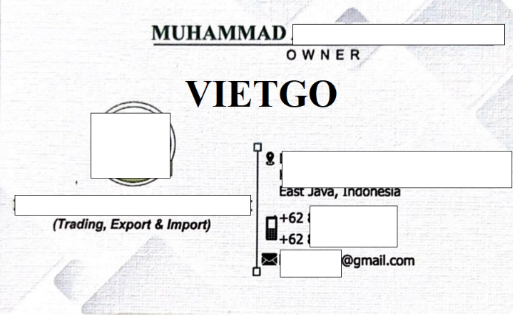 Với những chia sẻ trên, ông Muhammad rất mong nhận được phản hồi về mức giá cạnh tranh từ phía nhà cung cấp của VIETGO. Quý doanh nghiệp có thể đáp ứng được đơn hàng trên và có thiện chí hợp tác xin vui lòng liên hệ với vị khách hàng qua thông tin chi tiết dưới đây: