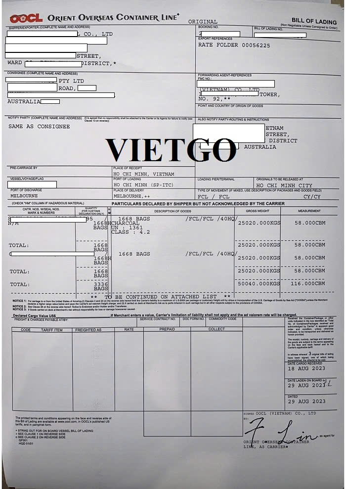 Dưới đây là bộ chứng từ cho đơn hàng nhập khẩu than củi từ Việt Nam sang Úc mà công ty ông đã thực hiện thành công:
