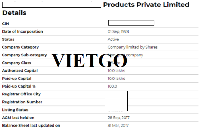 Địa chỉ công ty: Plot No. ██████████, Ấn Độ