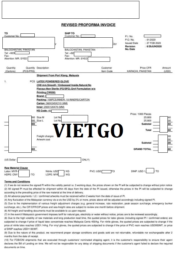 VIETGO xin gửi tới Quý vị thông tin đơn hàng nhập khẩu găng tay latex của ông Syed – đại diện doanh nghiệp tại Pakistan.