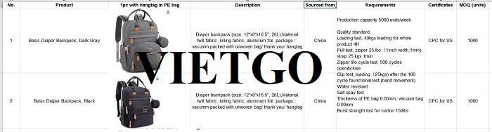 Chia sẻ về đơn hàng hiện tại, cô Hattie cần nhập khẩu sản phẩm Ba lô trẻ em để phục vụ dự án kinh doanh sắp tới. Cô đã liên hệ cũng như trao đổi với Vietgo về đơn hàng và rất mong sẽ nhận được báo giá sớm từ phía Nhà cung cấp. Quý nhà cung cấp nào có thể đáp ứng được đơn hàng của cô Hattie vui lòng liên hệ qua địa chỉ liên hệ dưới đây.