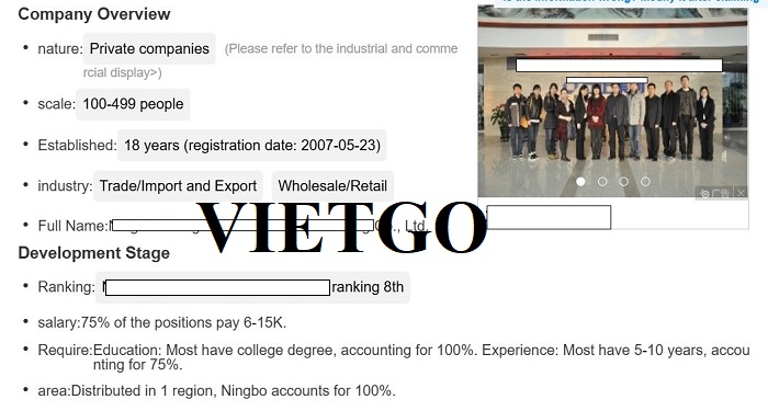 ██████████ Co., Ltd., một trong những đơn vị mua hàng của ██████████ tại Đức sở hữu hơn 3500 siêu thị tại EU, là công ty tư vấn và cung ứng hàng hóa có trụ sở tại Ninh Ba, Trung Quốc. Được thành lập vào tháng 6 năm 2006, công ty đã phát triển thành một trong những đại diện mua hàng uy tín tại Trung Quốc cho bốn chuỗi siêu thị lớn ở châu Âu. Với gần hai thập kỷ hoạt động, ██████████ đã xây dựng một hệ thống quản lý chuỗi cung ứng chặt chẽ, kết nối với hơn 2.000 nhà cung cấp tại Trung Quốc đại lục, Hồng Kông và Đài Loan, nhằm cung cấp sản phẩm chất lượng cao cho thị trường quốc tế.